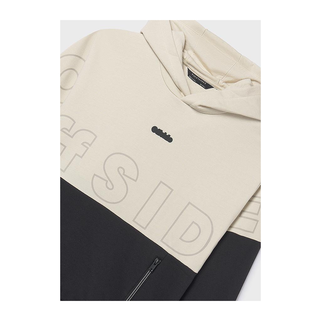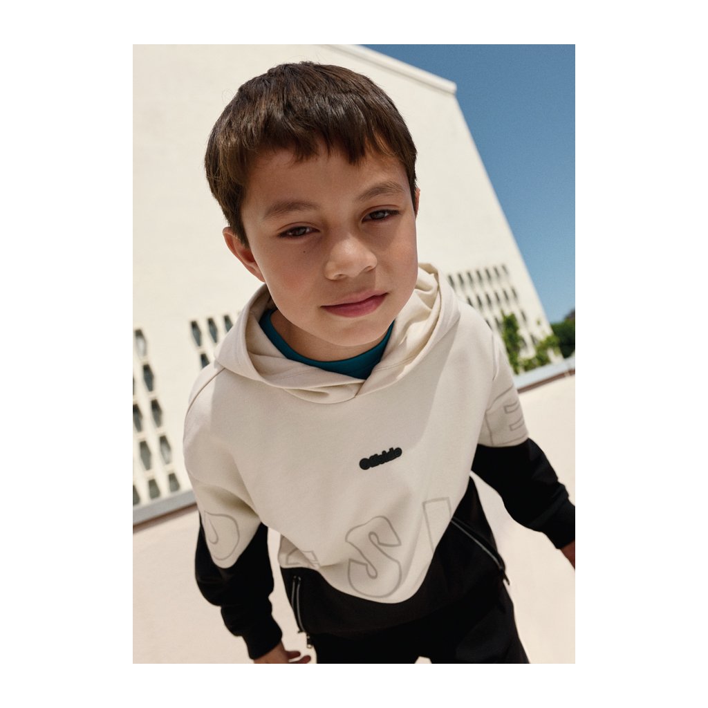 Fiús stílusos kapucnis pulóver a Mayoral márkától ideális azok számára, akik kényelmes és modern darabot keresnek mindennapi ruhatárukba. A pulóver praktikus kapucnival, amely védelmet nyújt a hideg és a szél ellen.