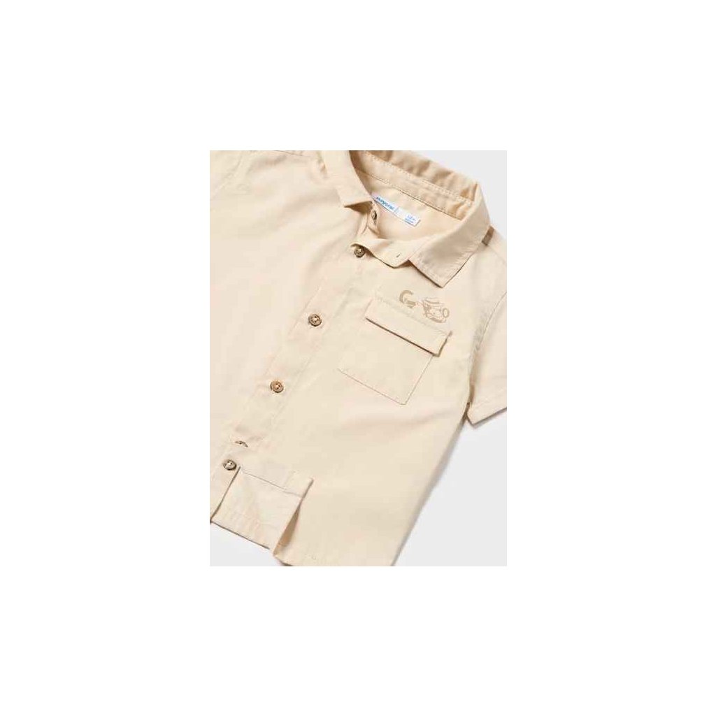 A Mayoral márkájú fiú ing időtlen darab a fiú ruhatárában. 100 % pamutból készült, ami maximális kényelmet, légáteresztést és kellemes viseletet biztosít egész nap. A rövid ujjú kialakítás a melegebb időszakokra teszi alkalmassá.