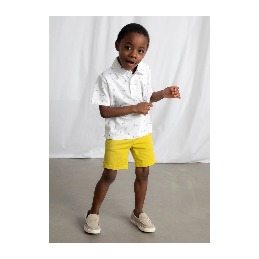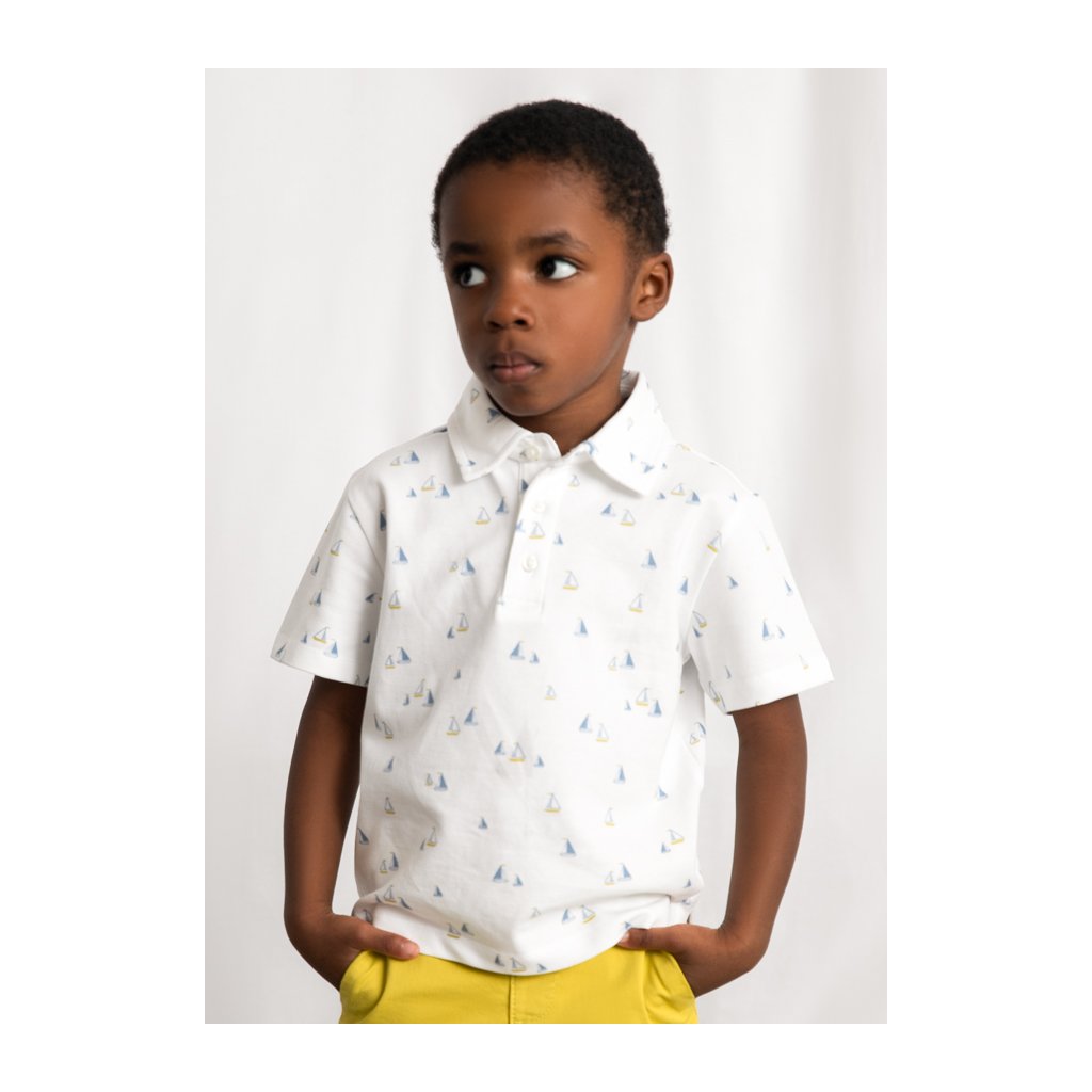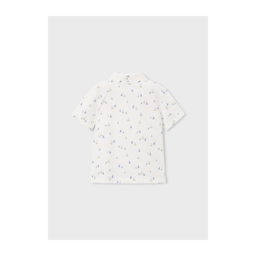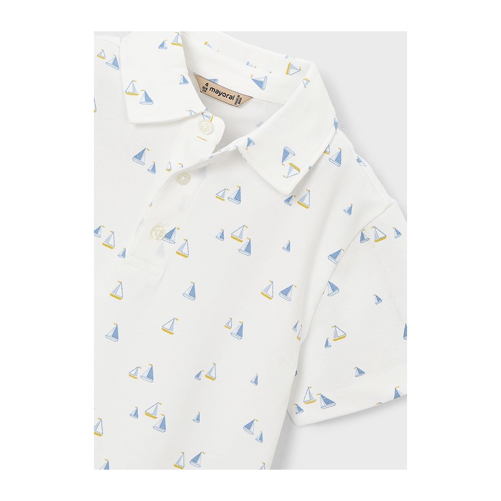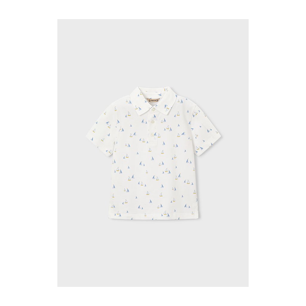 Fiú rövid ujjú póló a Mayoral márkától fehér alapon vidám mintával. Klasszikus gallér és rövid ujjú, ami elegáns és rendezett megjelenést kölcsönöz. A póló ideális iskola, ünnepek vagy családi alkalmak számára. Stílusos darab, amely ötvözi a kényelmet és az elegáns megjelenést.