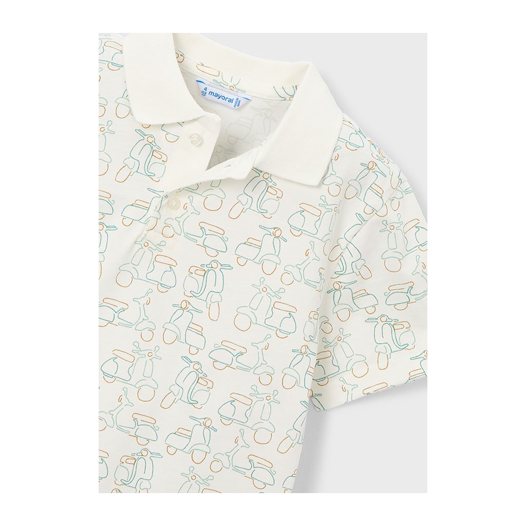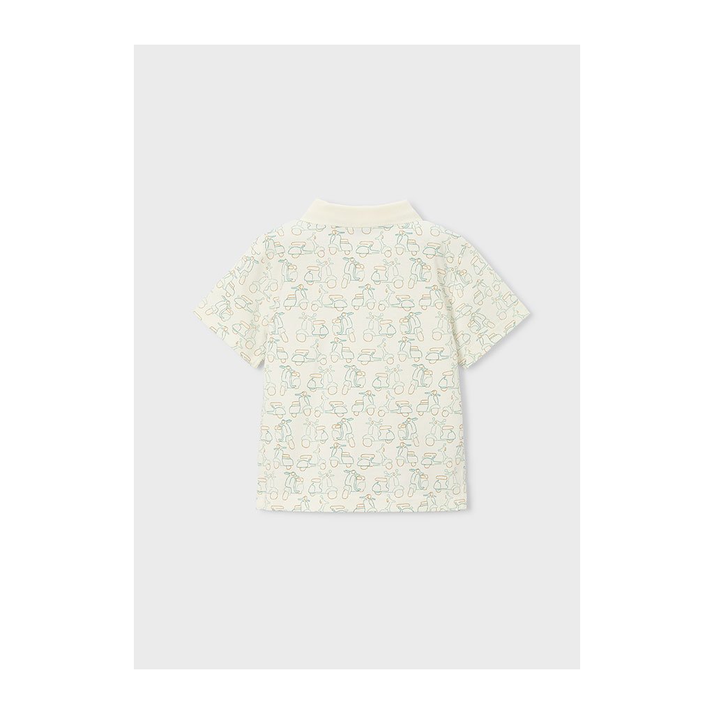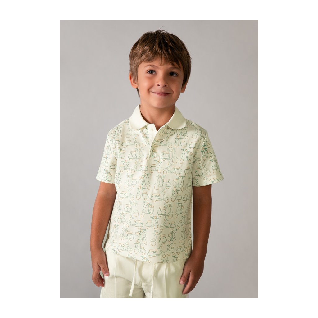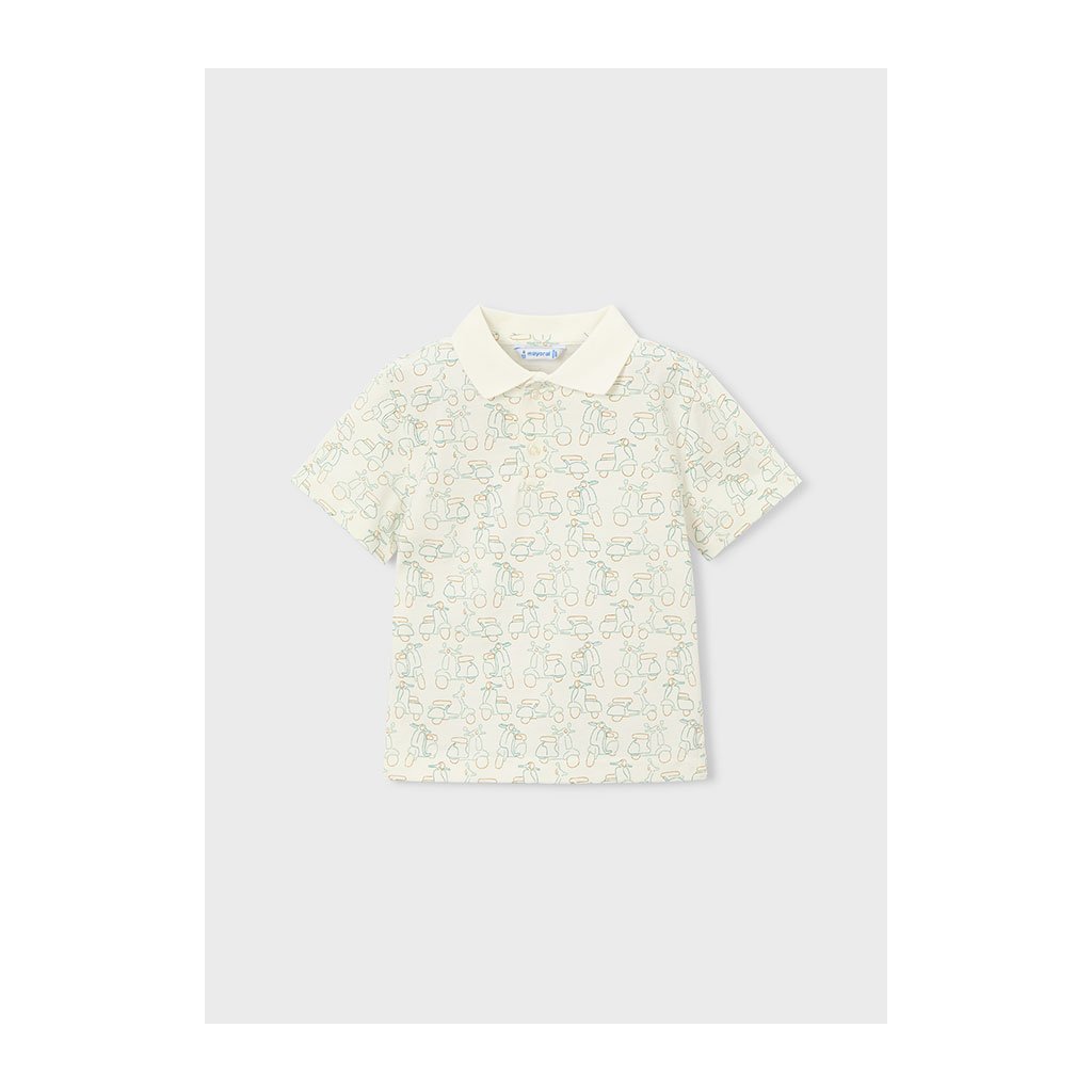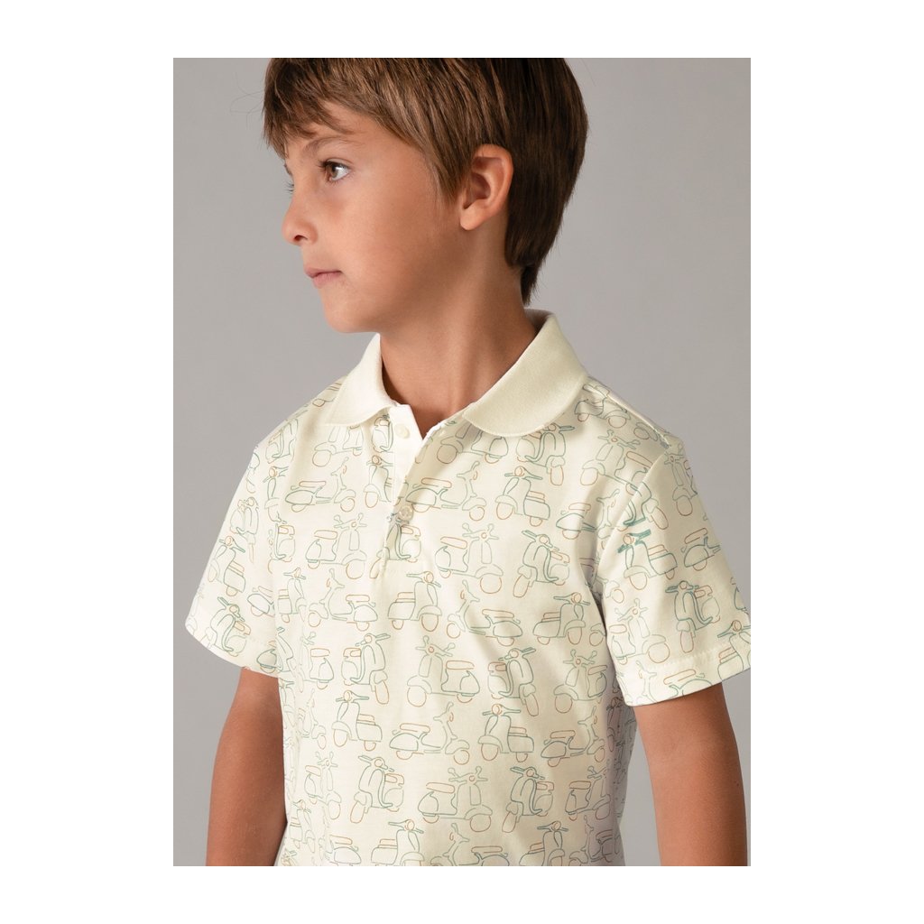 A Mayoral márkájú fiú rövid ujjú póló bézs alapon vidám mintával. Klasszikus gallérral és rövid ujjú kialakítással rendelkezik, ami elegáns és rendezett megjelenést kölcsönöz. A póló ideális iskola, ünnep vagy családi alkalmakra. Stílusos darab, amely ötvözi a kényelmet és az elegáns megjelenést.