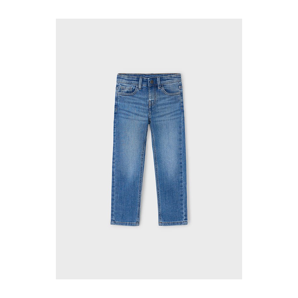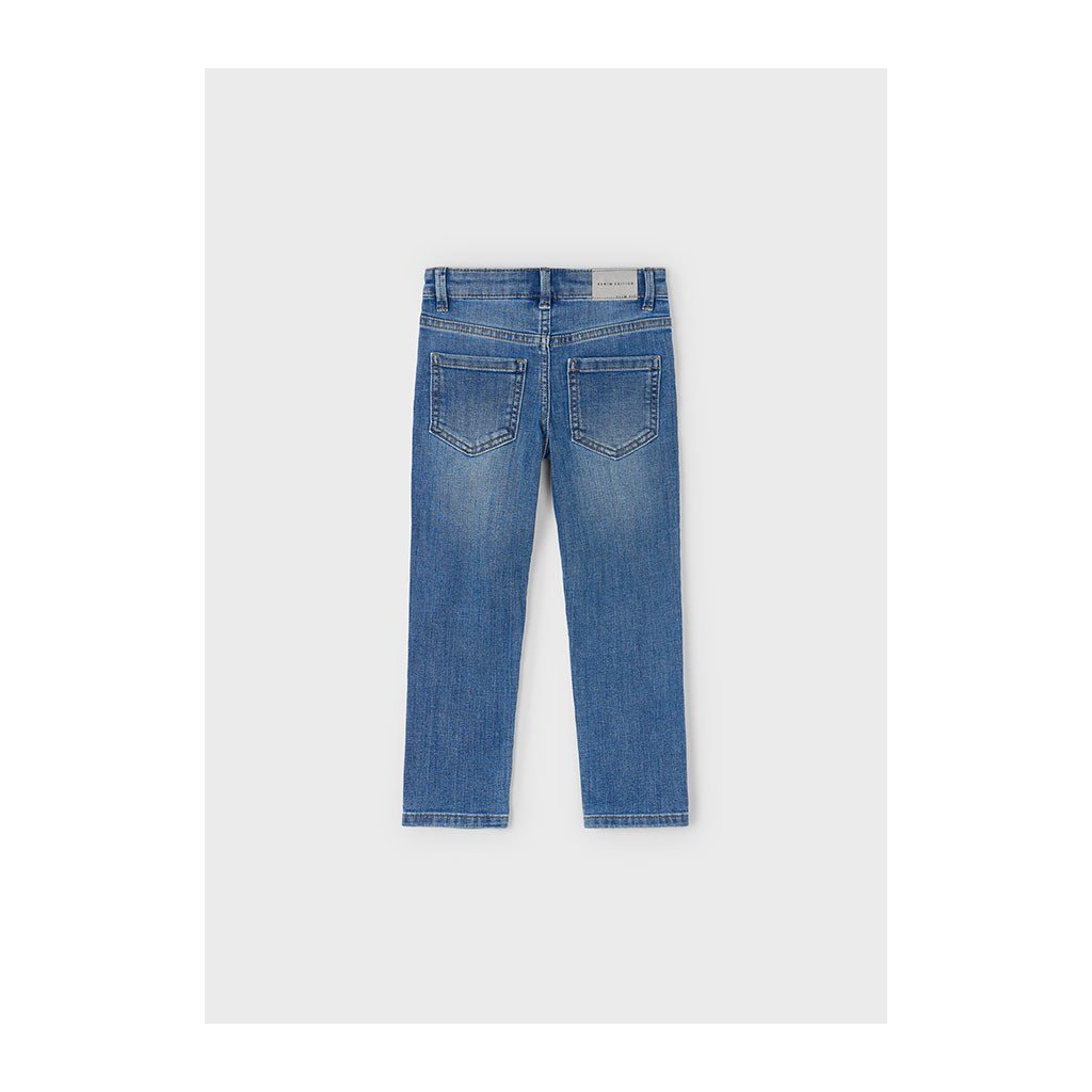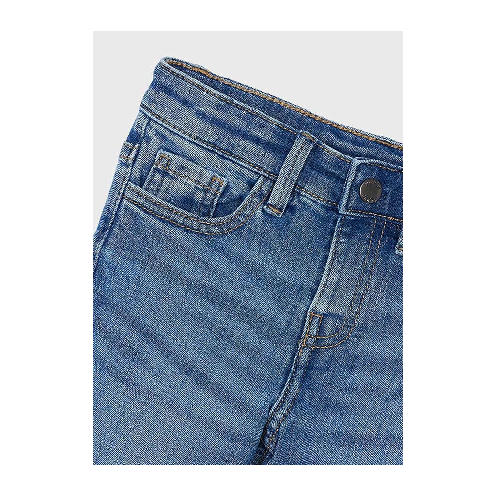 Modern fiús farmer Mayoral Slim Fit ötvözi a stílust, kényelmet és rugalmasságot. Csattal záródik, ami megkönnyíti a felvételt, míg állítható derék belső gumival biztosítja a pontos derékméretet.
