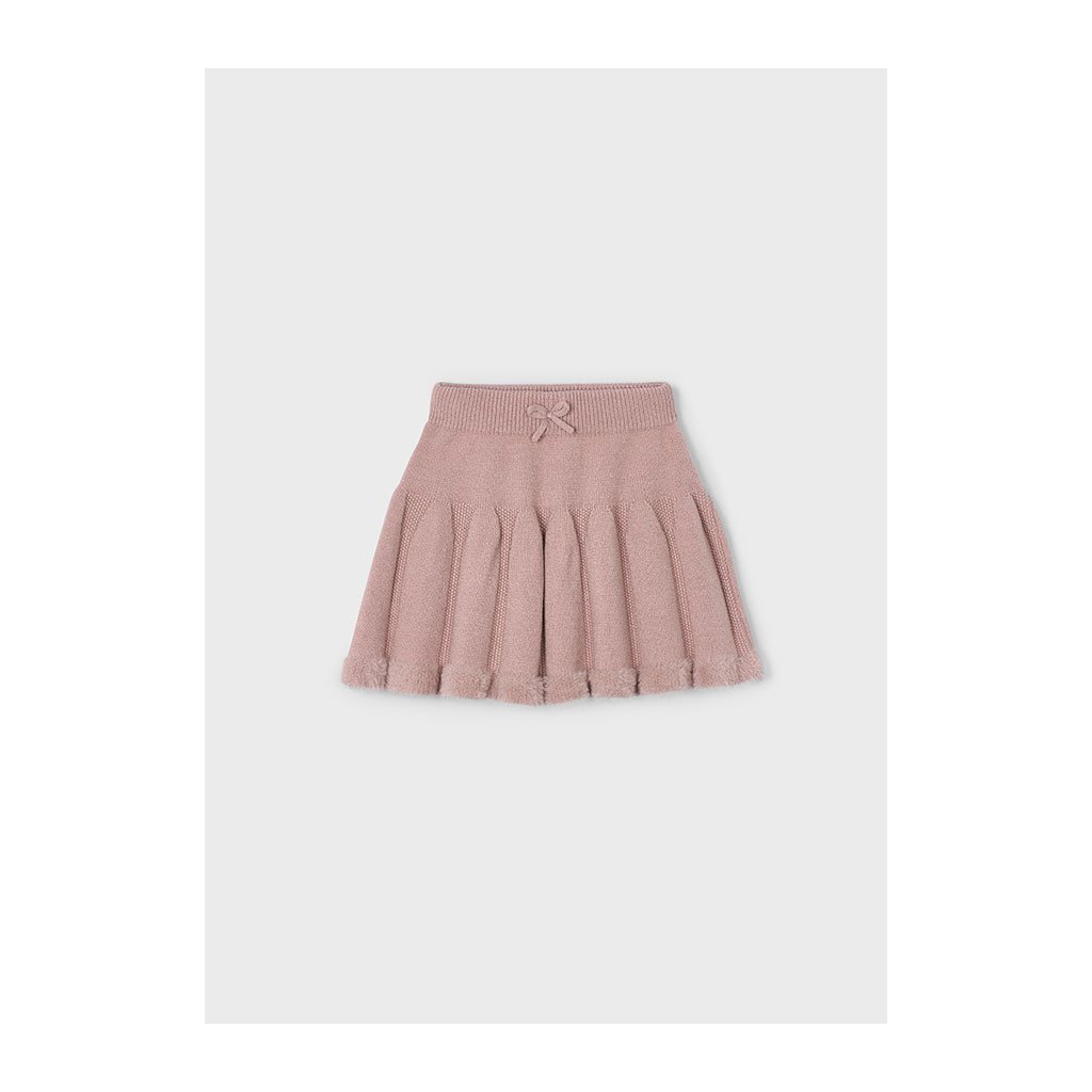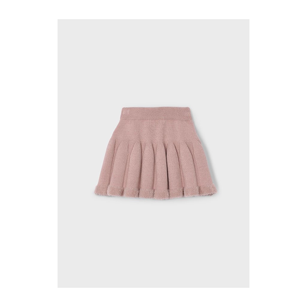 Stílusos kötött lány szoknya a Mayoral márkától, finom rózsaszín árnyalatban, ideális hűvösebb napokra. A puha és kellemes kötött anyag kényelmet biztosít, ugyanakkor megtartja a szoknya formáját egész napos viselés során. A kényelmes elasztikus derék könnyű fel- és levételt tesz lehetővé, valamint szabad mozgást. Az időtlen rózsaszín szín könnyen kombinálható pólókkal, pulóverekkel vagy blúzokkal, így univerzális és elegáns darab a gyermek ruhatárában.