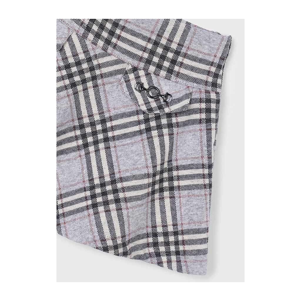 Stílusos lányka kockás szoknya a Mayoral márkától, elegáns szürke színben, ideális hűvösebb napokra. vastagabb, jó minőségű anyagból készült, amely kellemes meleget biztosít, és megőrzi formáját egész napos viselés közben is. A klasszikus kockás minta időtlen megjelenést kölcsönöz a szoknyának, így alkalmas iskolába, mindennapi viseletre, valamint ünnepi alkalmakra is. A kényelmes szabás és a praktikus derék biztosítja a komfortot és az egyszerű kombinálhatóságot harisnyával, pulóverrel vagy zakóval.