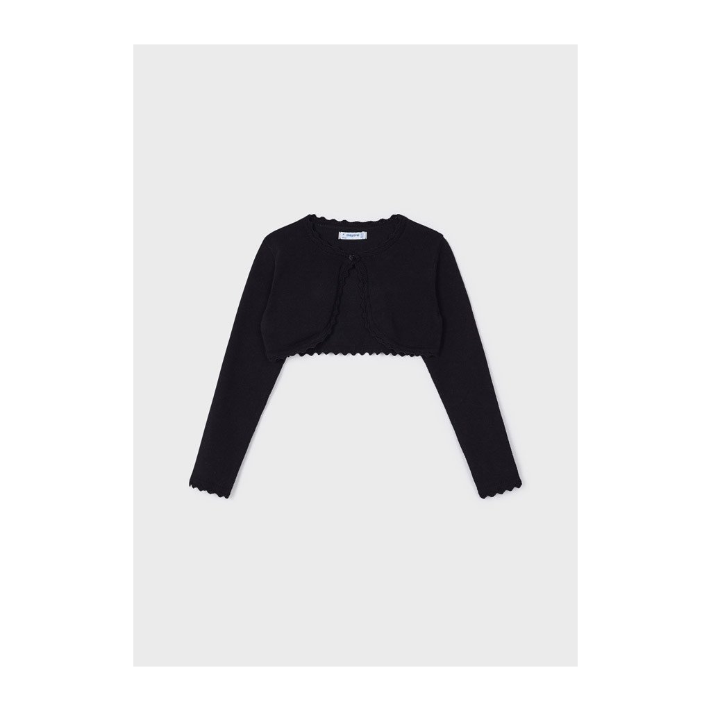 Cuki boleró világos fekete színben, amely tökéletesen kiegészíti minden ruhát vagy ünnepi szettet. A puha anyag és a kényelmes szabás biztosítja a stílusos és lányos megjelenést.