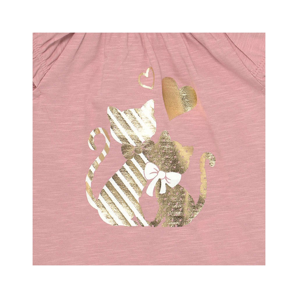 Praktikus készlet két puha pamut pólóból lányoknak, mindkettő vidám nyomtatással díszítve. Kényelmes és ideális mindennapi viseletre, kényelmet és játékos lányos stílust nyújtva.