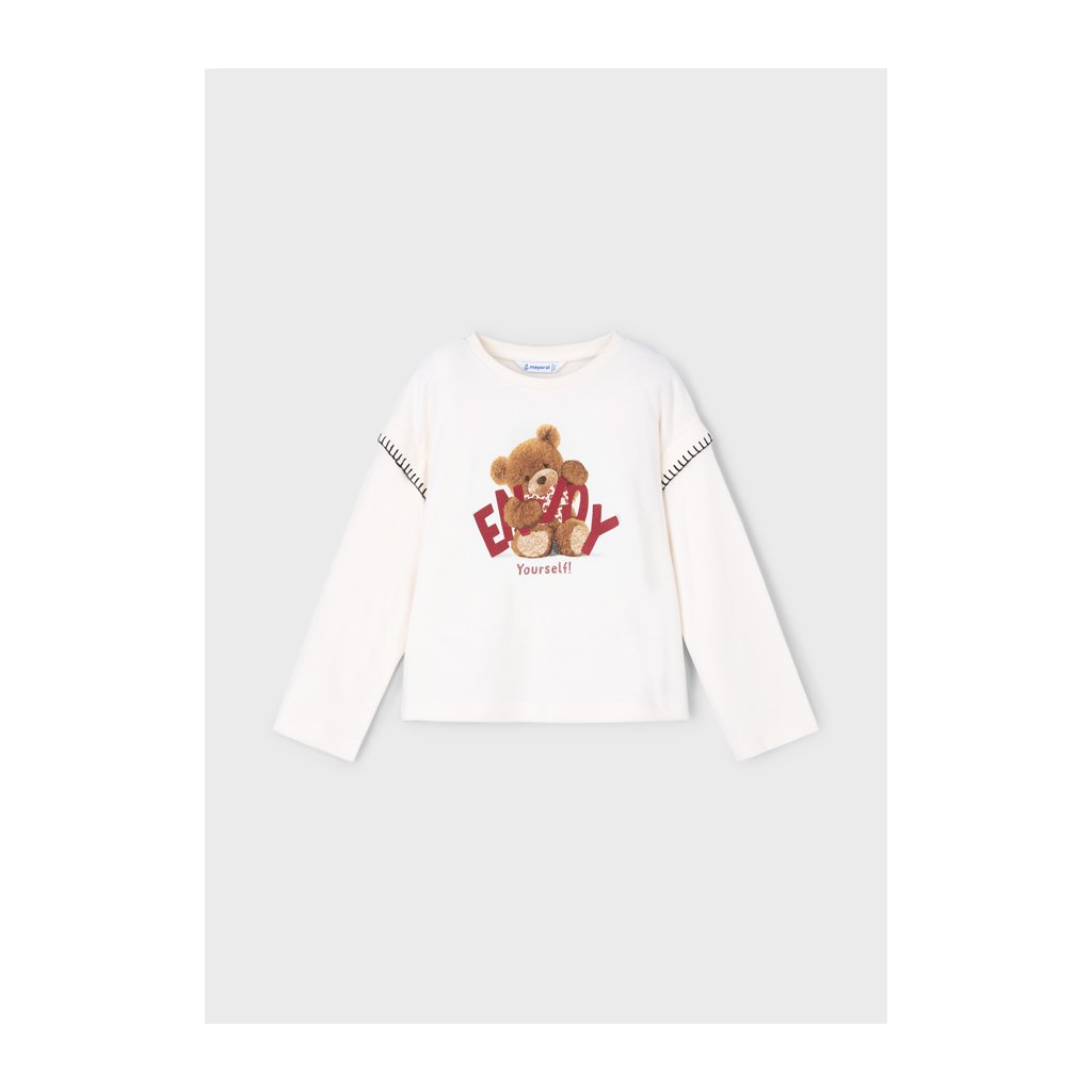 MAYORAL pamut lányka póló – hosszú ujjú maci nyomtatással – Ecru / Red