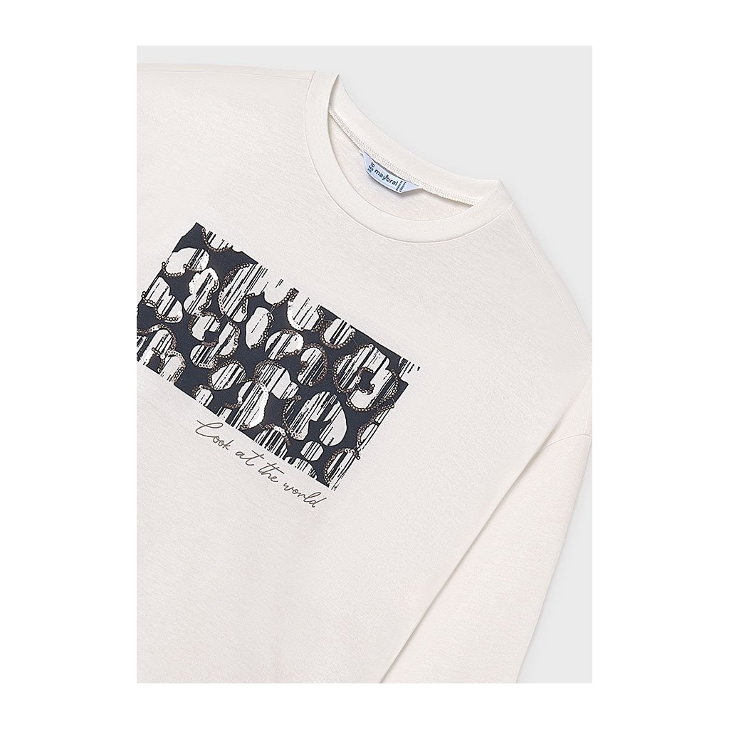 MAYORAL pamut hosszú ujjú lányka póló nyomtatással – ecru