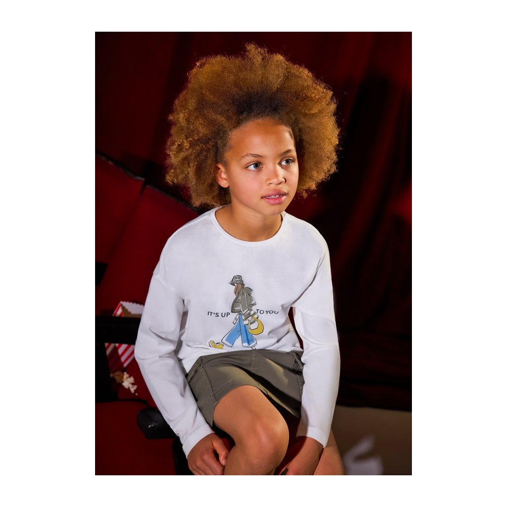 MAYORAL pamut lányka póló nyomtatással – Krém