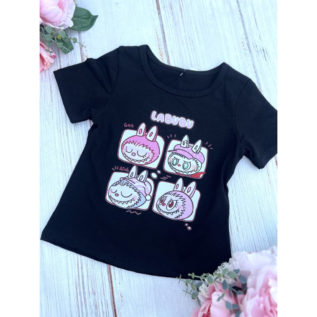 Játékos lányka póló rövid ujjú kedvelt Labubu motívummal, minden kis rajongónak örömet szerez. Kényelmes, kellemes viselet és ideális mindennapi napokra az iskolába, óvodába vagy szabadidőre.